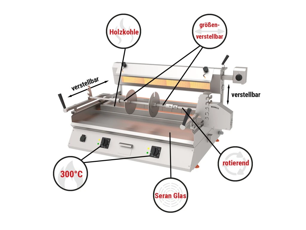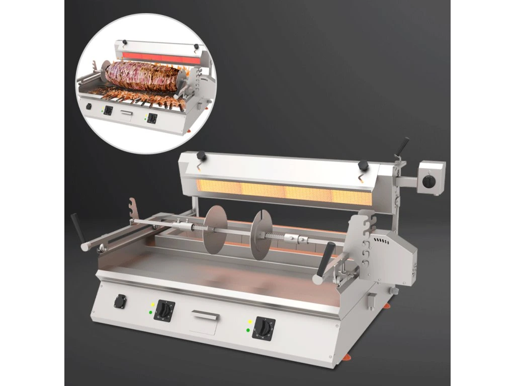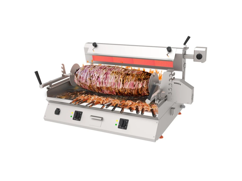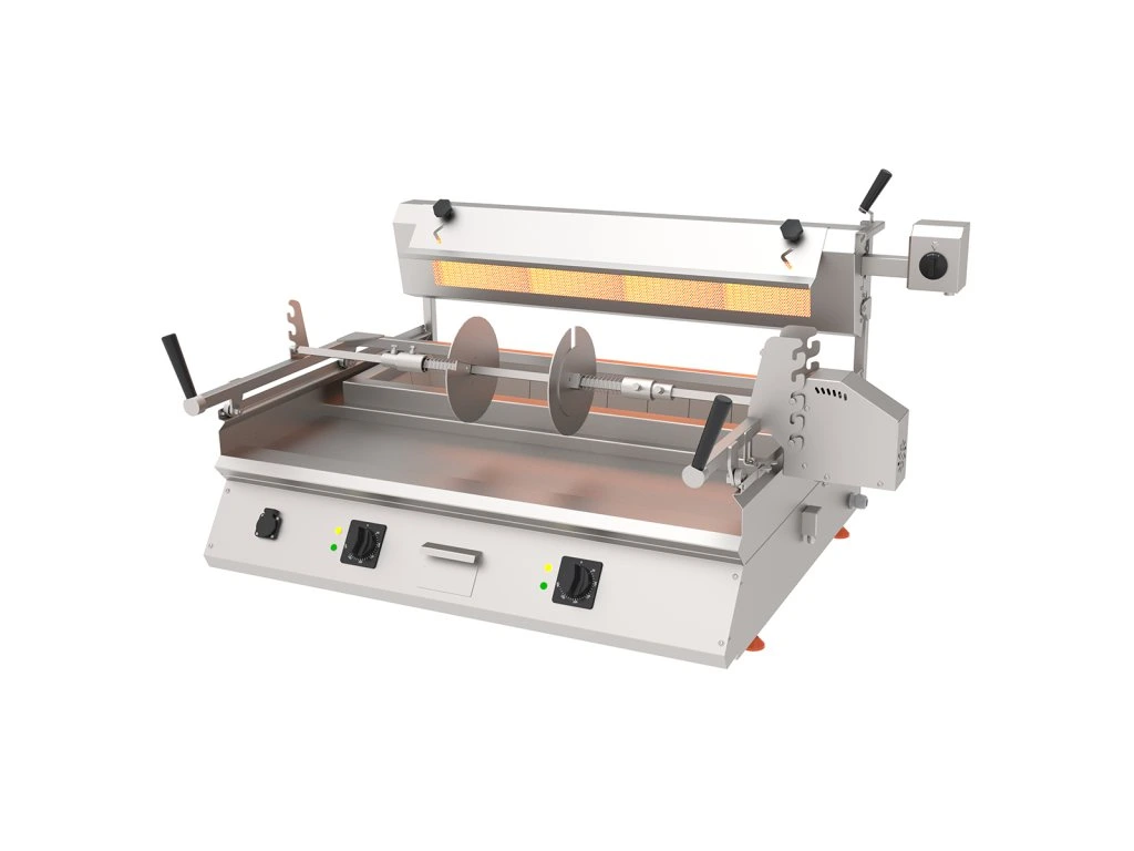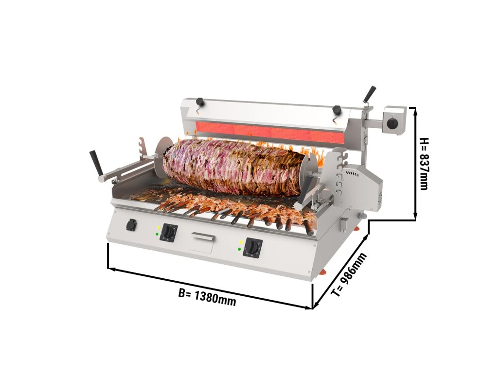 Komercyjny grill kebabowy Cag - poziomy stołowy, węglowy + elektryczny - 9,8 kW, 400 V - 85 kg