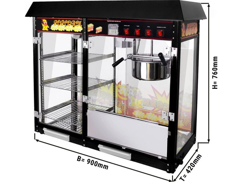 Maszyna do popcornu - 5 kg/h - z 3 podgrzewanymi półkami