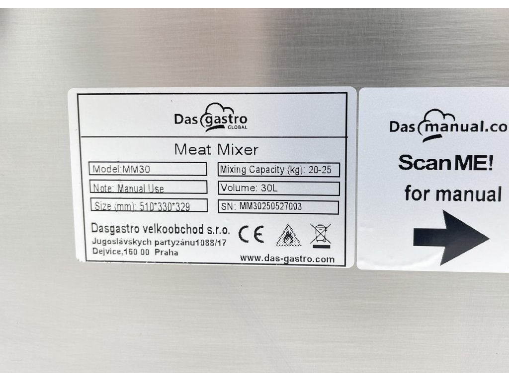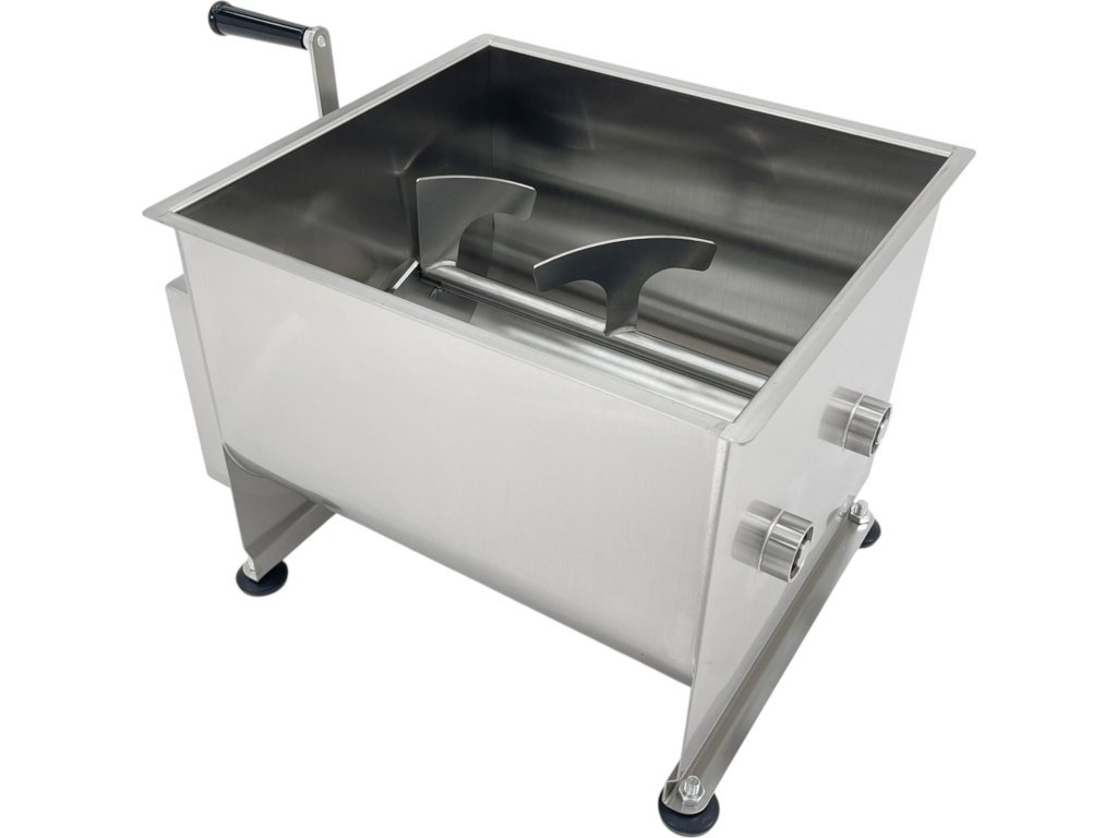 Profesjonalna ręczna mieszarka do mięsa MM30 została zaprojektowana do wydajnego i równomiernego mieszania mięsa mielonego z przyprawami, tłuszczem i innymi składnikami. Dzięki dwuosiowemu systemowi mieszania zapewnia idealną jednorodność mieszanki bez uszkadzania struktury mięsa. Ten model o większej pojemności – 30 litrów – idealnie nadaje się do średniej wielkości zakładów mięsnych, wędliniarni i zakładów gastronomicznych, które stawiają na jakość i wydajność.