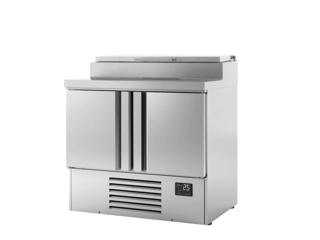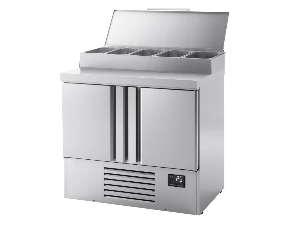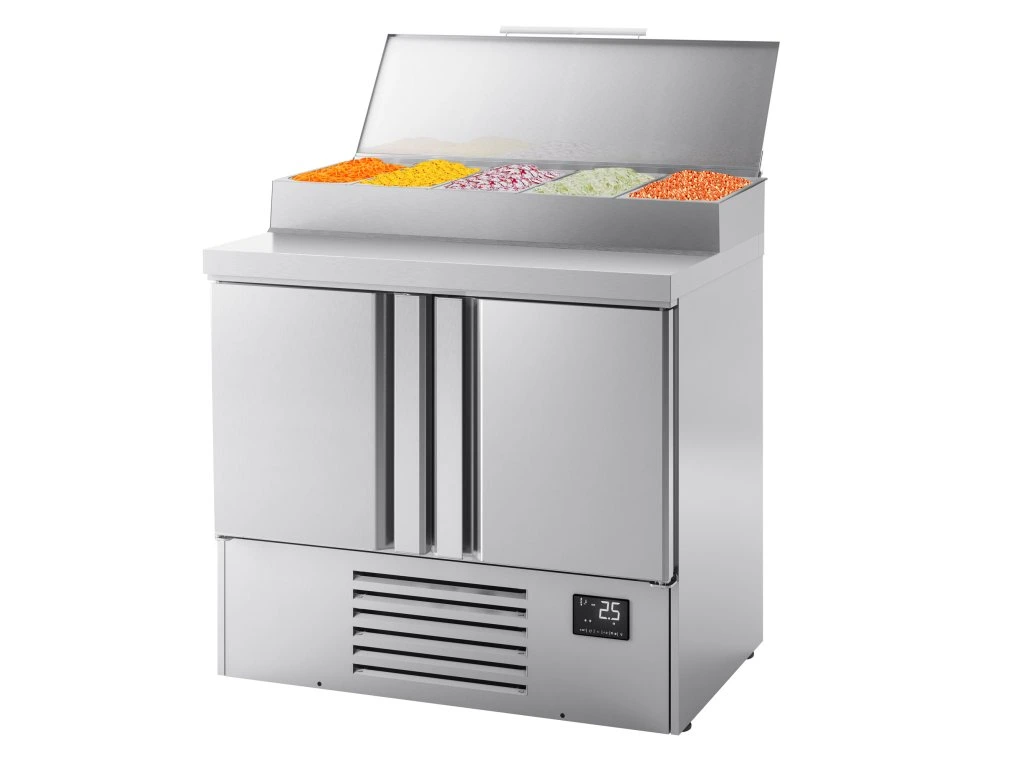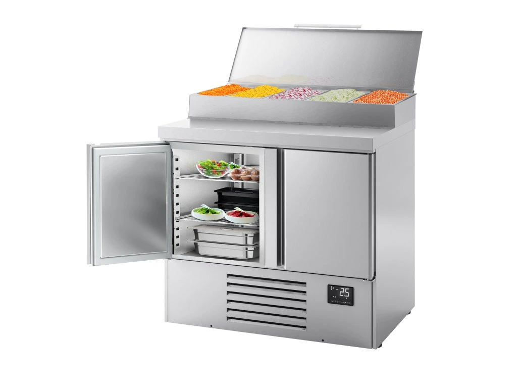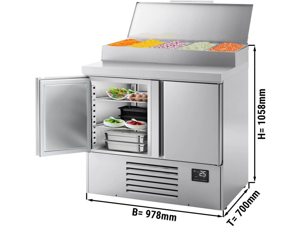Mini stół chłodniczy do przygotowywania - 978x700mm - z 2 drzwiami - nadstawna ze stali nierdzewnej 5x GN 1/4