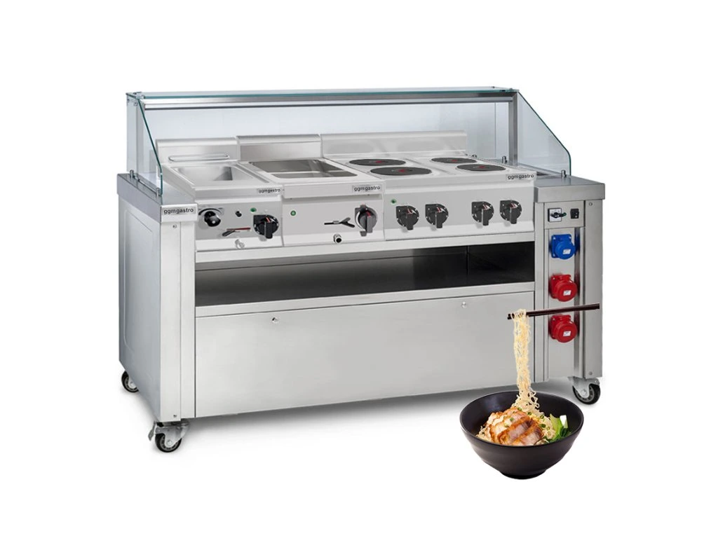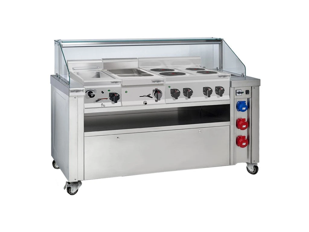 Mobilna stacja do gotowania - 1600x850mm - wysokość: 1170mm - włącznie z kuchenką do makaronu, płytą elektryczną & bemarem