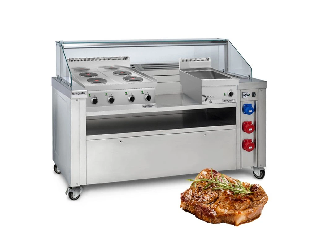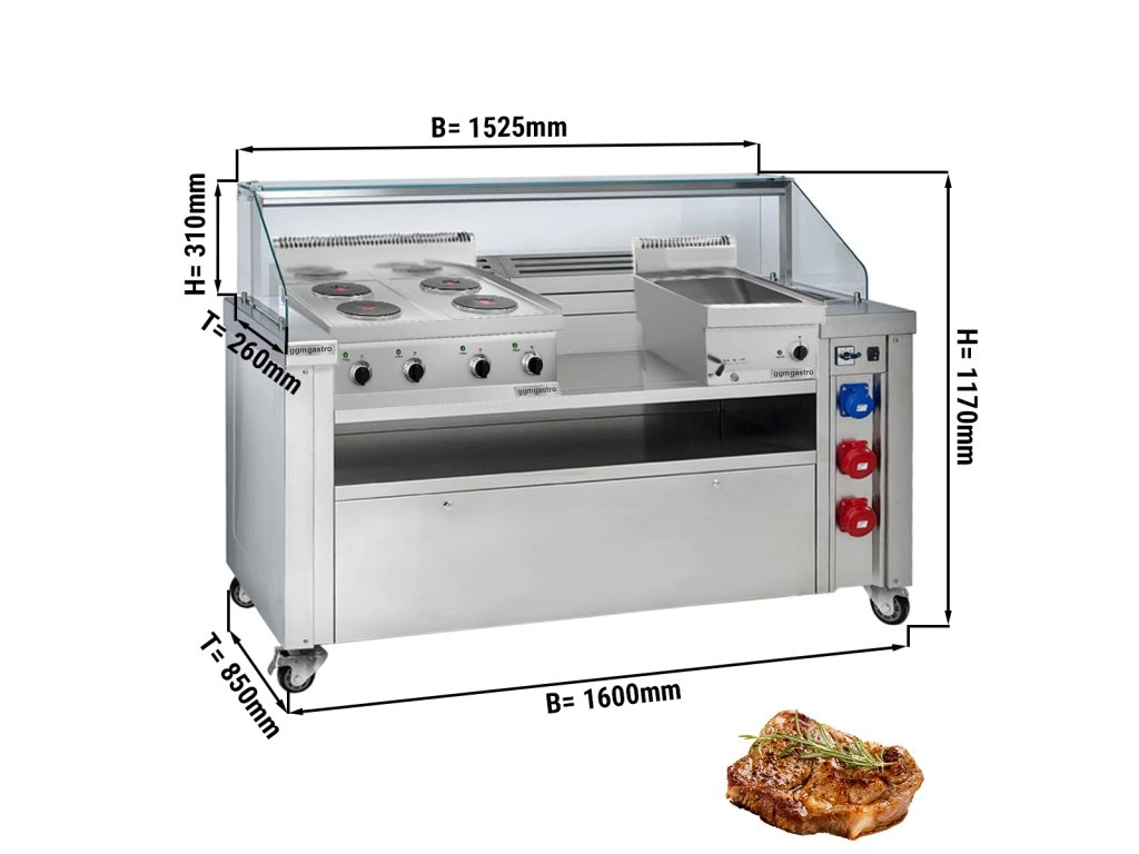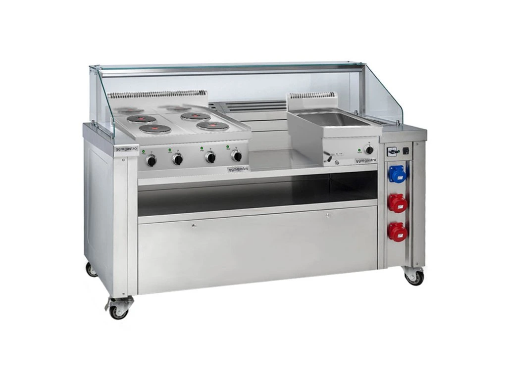 Mobilna stacja do gotowania - 1600x850mm - wysokość: 1170mm - włącznie z kuchenką elektryczną & bemarem