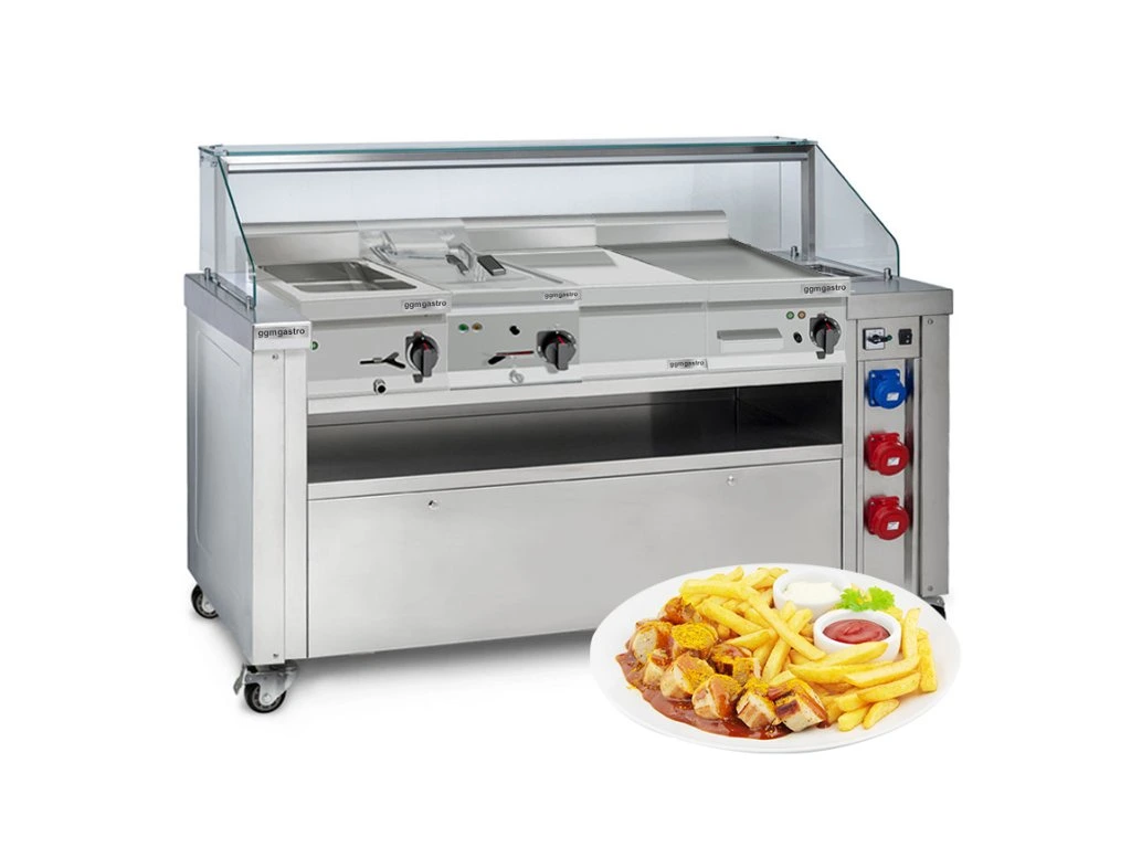 Mobilna stacja do gotowania - włącznie z frytkownicą, płytą do smażenia, Bemar i elementem neutralnym