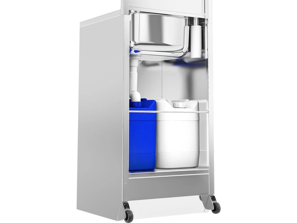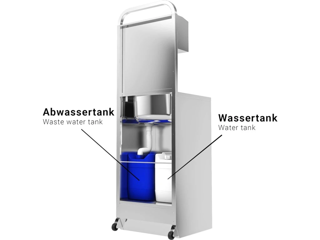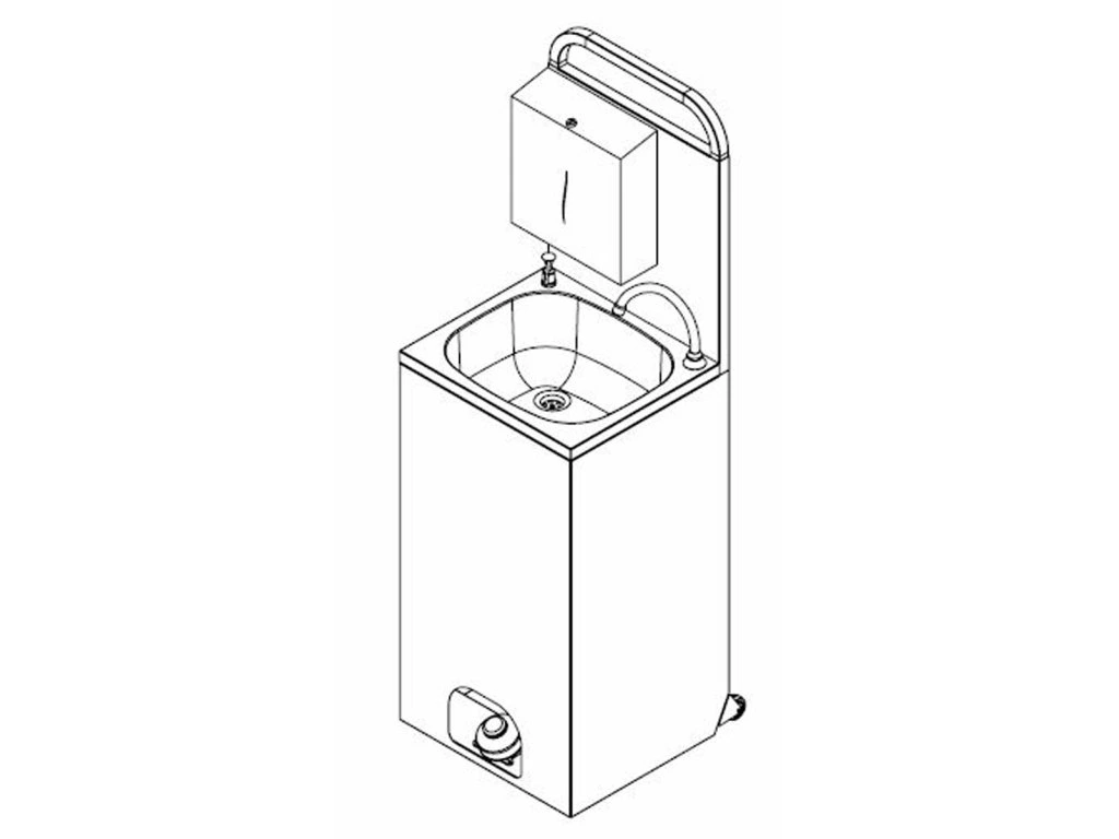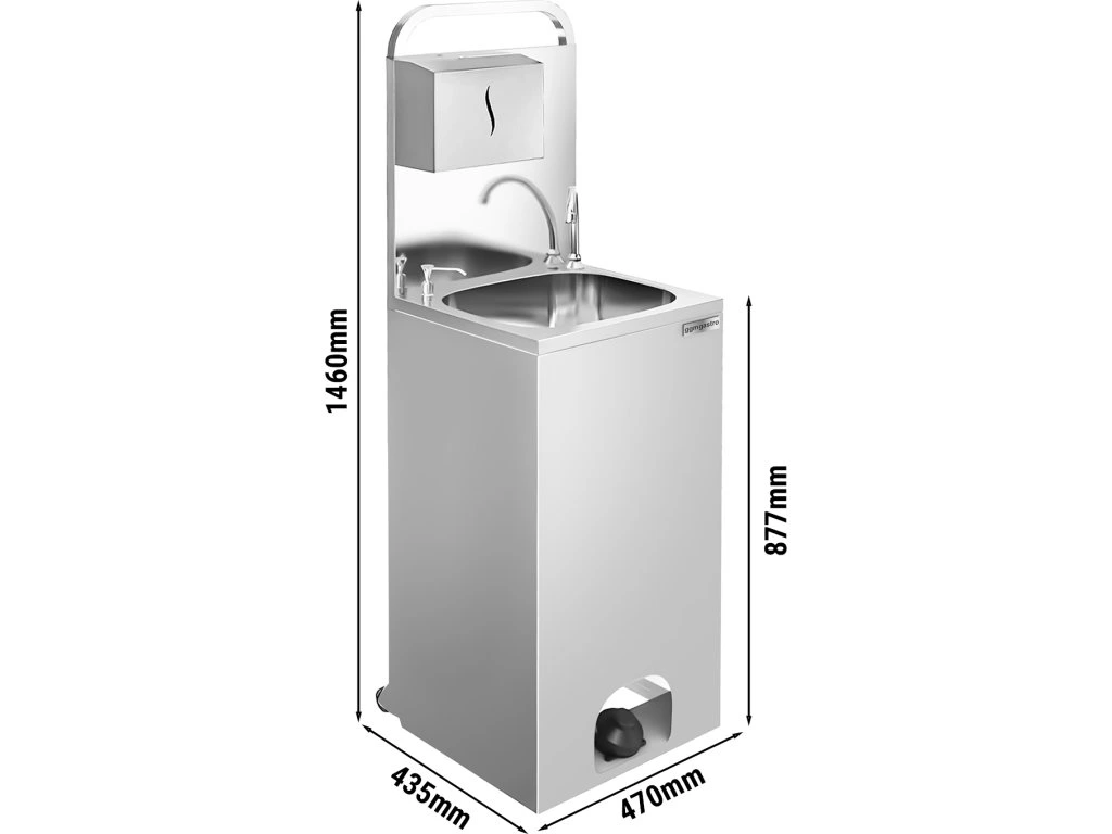Mobilna umywalka do rąk - wymiary umywalki: 410x350 mm - z dozownikiem mydła i ręczników papierowych