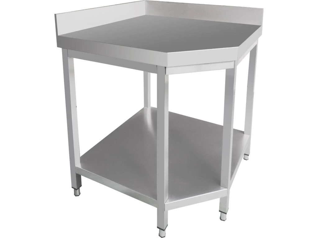 Narożny stół roboczy PREMIUM ze stali nierdzewnej - 1000x700 mm - z dolną półką & panelem tylnym