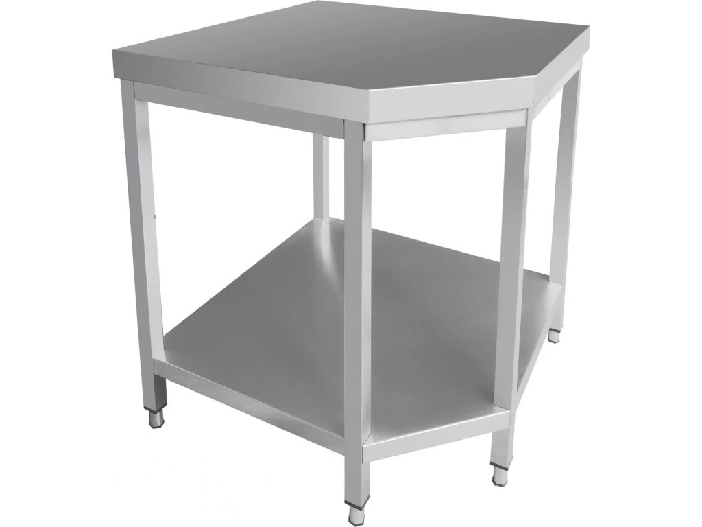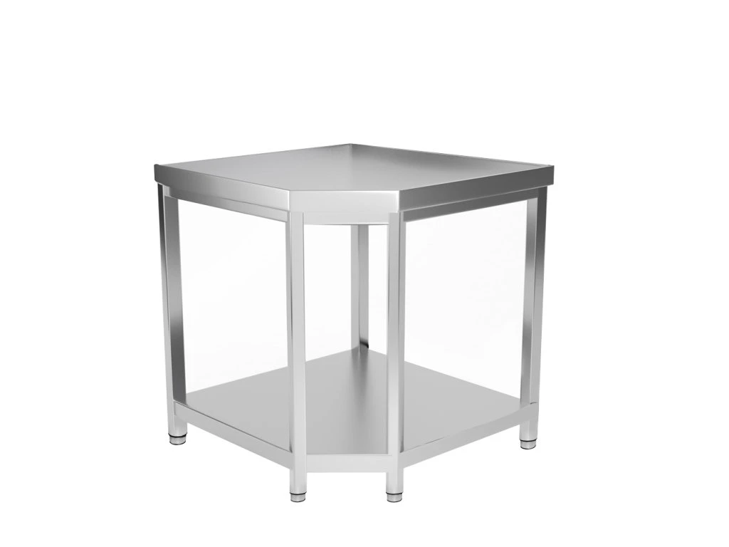 Narożny stół roboczy PREMIUM ze stali nierdzewnej - 1000x700 mm - z półką dolną bez panelu tylnego