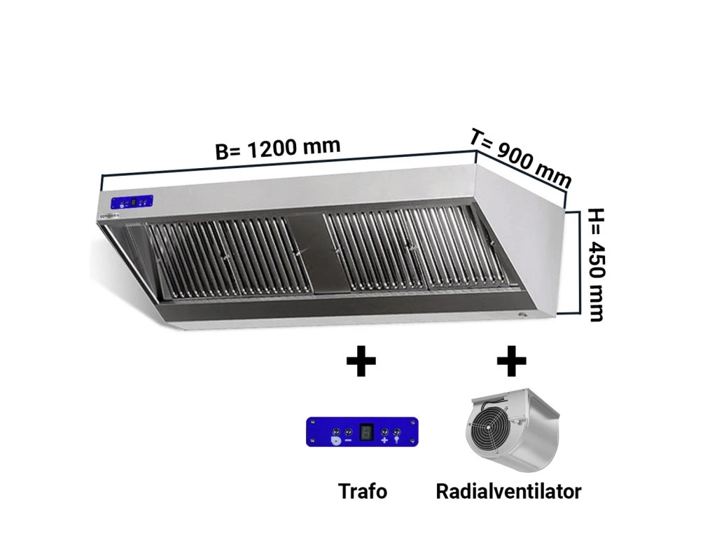 Okap ścienny - 1,2 m - z silnikiem, regulatorem, filtrem i lampą