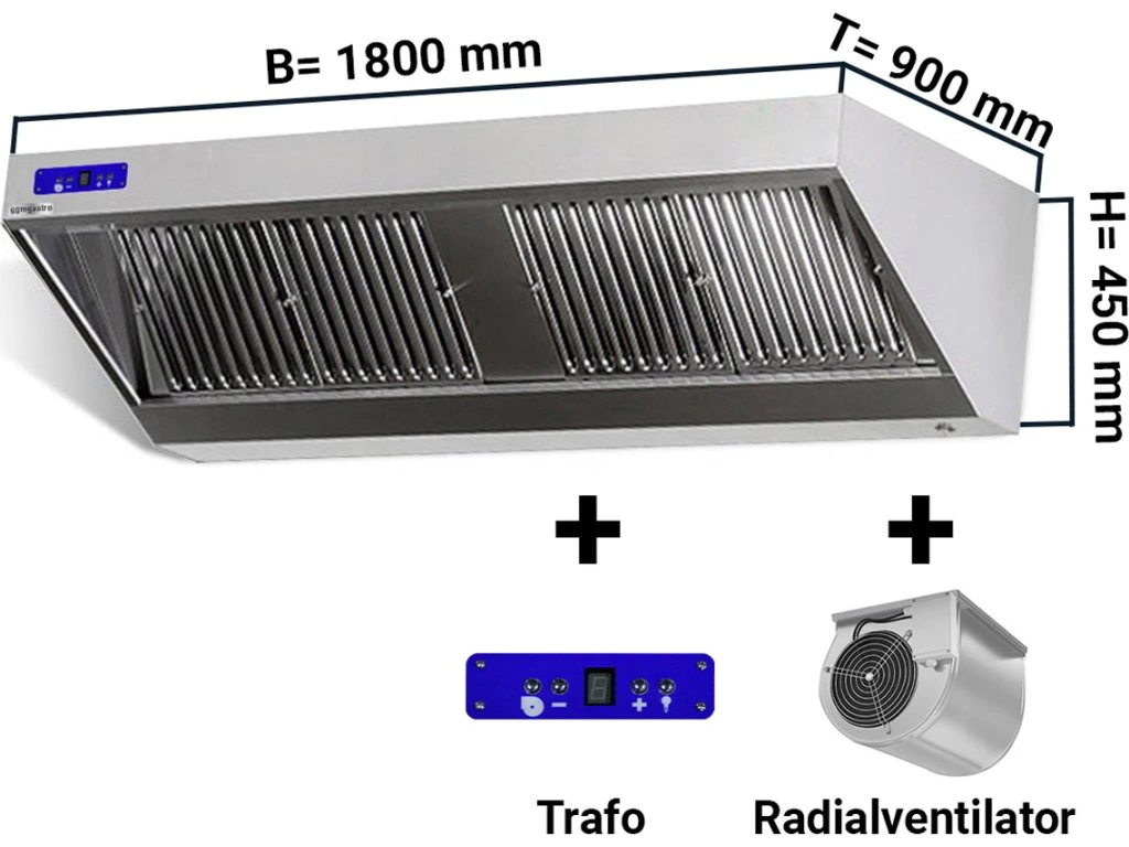 Okap ścienny - 1,8 m - z silnikiem, regulatorem, filtrem i lampą