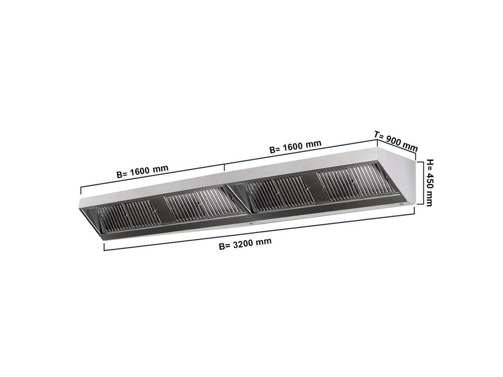Okap ścienny - 3200 mm - z filtrem i lampą