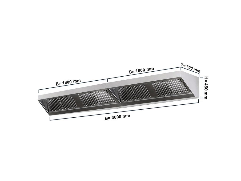 Okap ścienny - 3600 mm - z filtrem i lampą