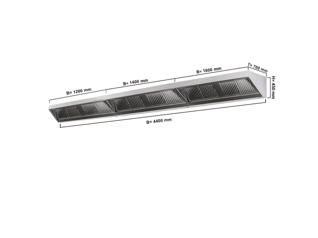 Okap ścienny - 4400 mm - z filtrem i lampą