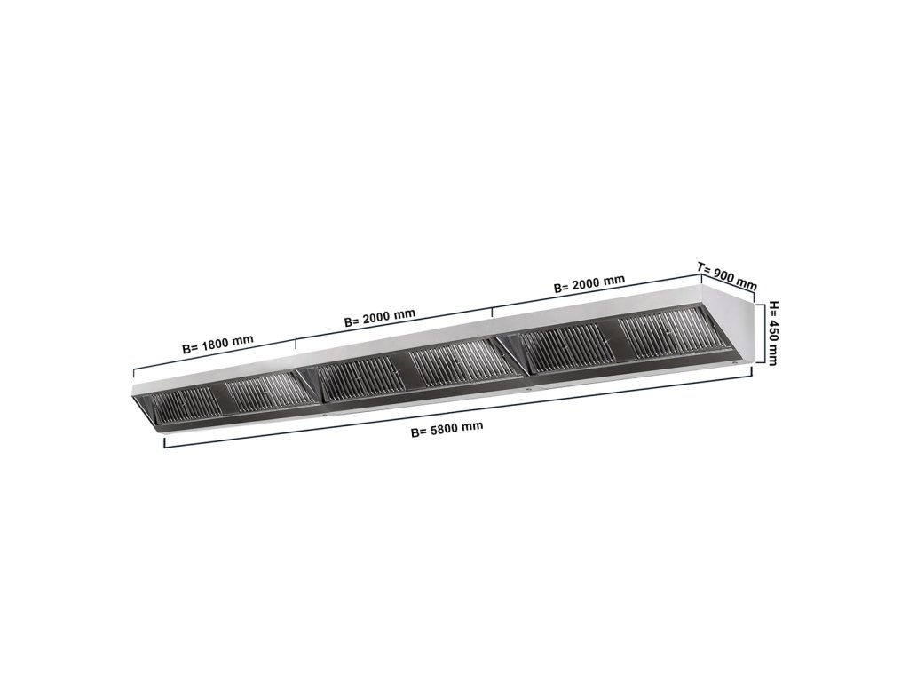 Okap ścienny - 5800mm - z filtrem i lampą