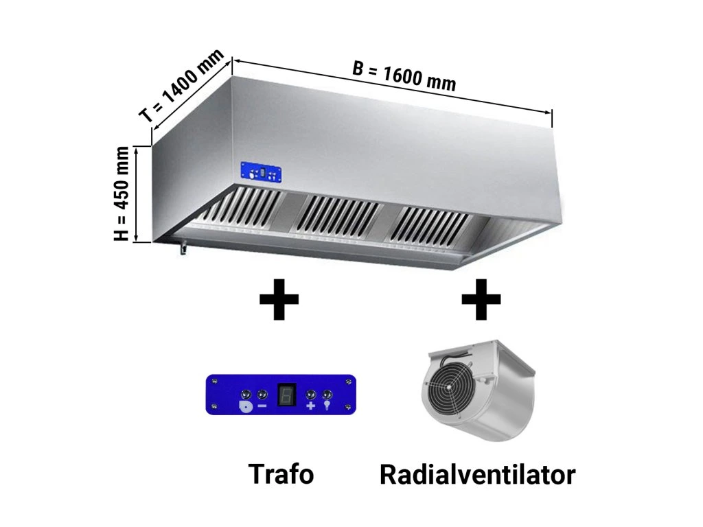 Okap skrzyniowy - 1,6 m - z silnikiem, regulatorem, filtrem i lampą
