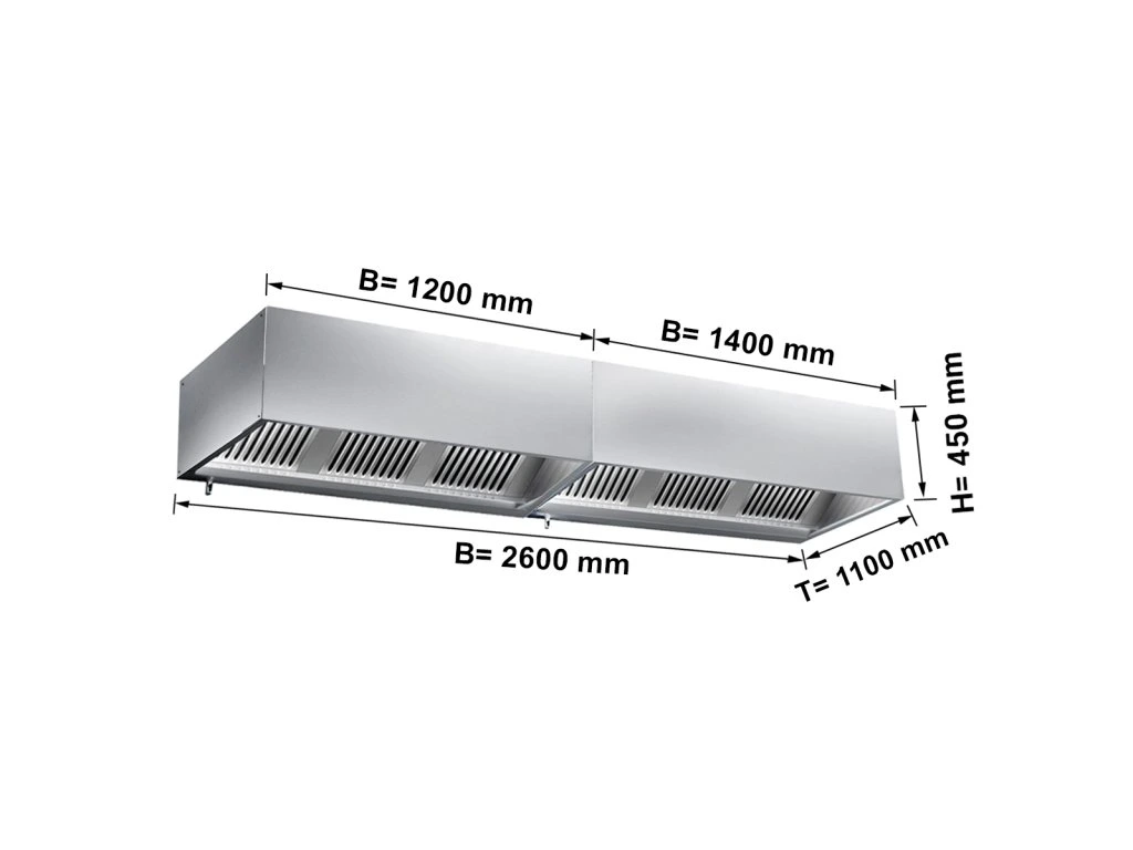 Okap skrzyniowy - 2,6 m - z filtrem i lampą
