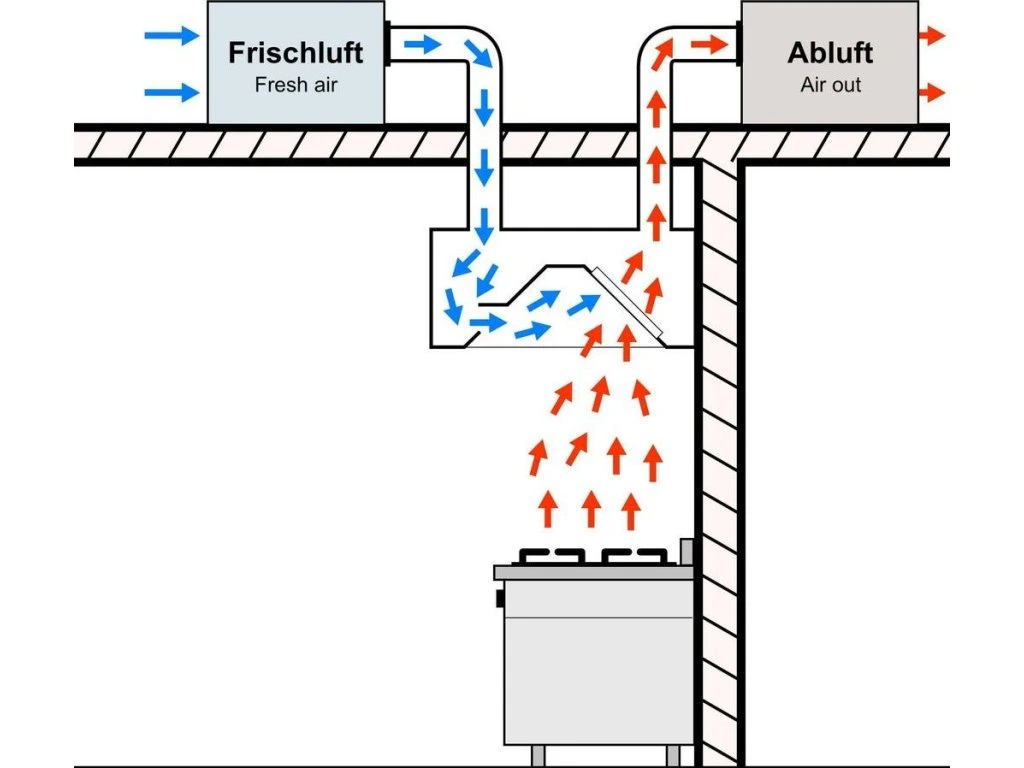 - Dostarczanie powietrza zewnętrznego, które poprzez specjalną konstrukcję wewnętrzną nawiewane jest bezpośrednio na filtry tłuszczowe, powoduje powstanie podciśnienia w masce. Podciśnienie powoduje wysoki efekt separacji i ekstrakcji tłuszczu.