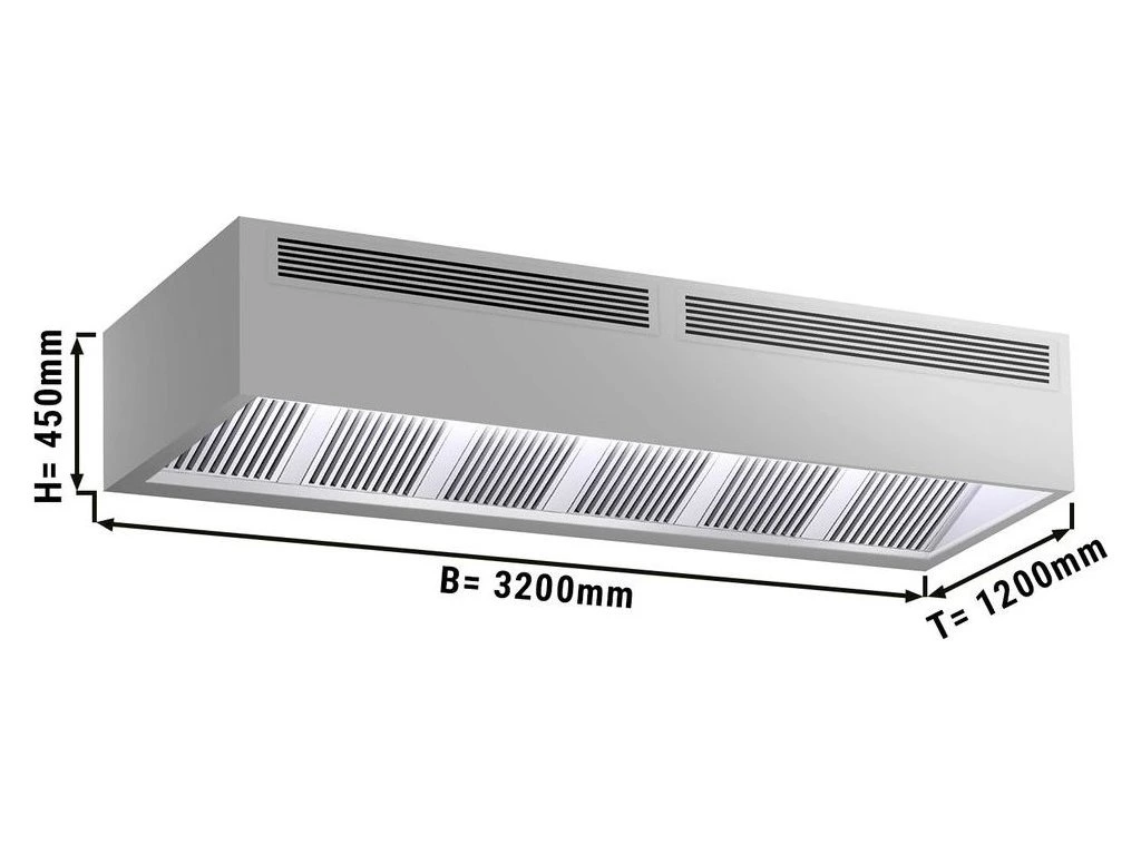 Okap skrzynki indukcyjnej - 3,2 m - z filtrem i lampą LED