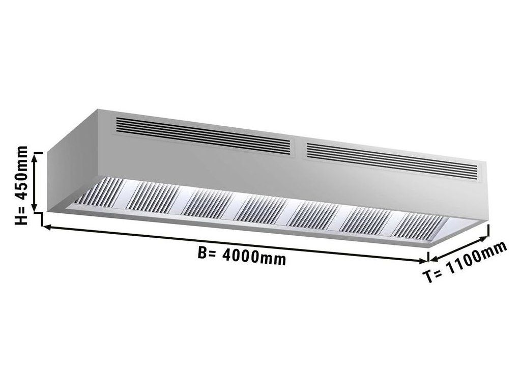Okap skrzynki indukcyjnej - 4,0m - z filtrem i lampą LED