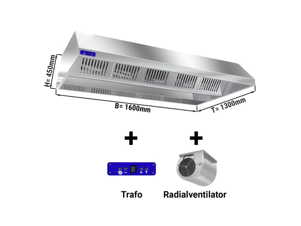 Okap sufitowy - 1.6 m - z silnikiem, regulatorem, filtrem i lampą