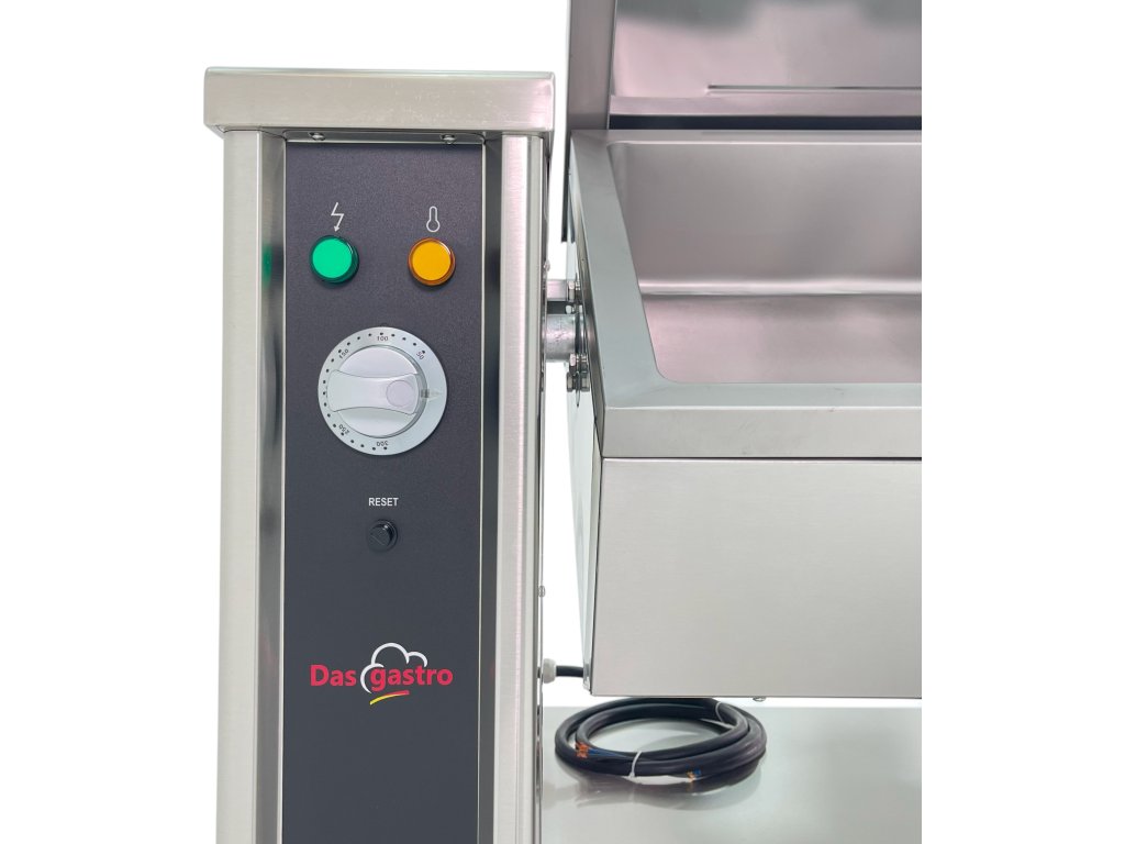 Profesjonalna patelnia elektryczna o pojemności 80 l to idealny wybór do kuchni o dużej kuchenności. Oferuje proste i niezawodne sterowanie za pomocą mechanicznego termostatu, dzięki któremu łatwo ustawisz żądaną temperaturę.