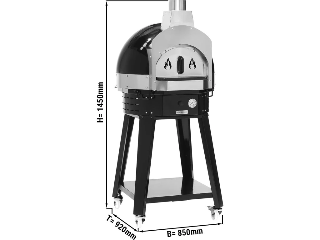 Piec do pizzy na drewno - Czarny - Wysokość: 0,83 m - włącznie z ramą podstawy