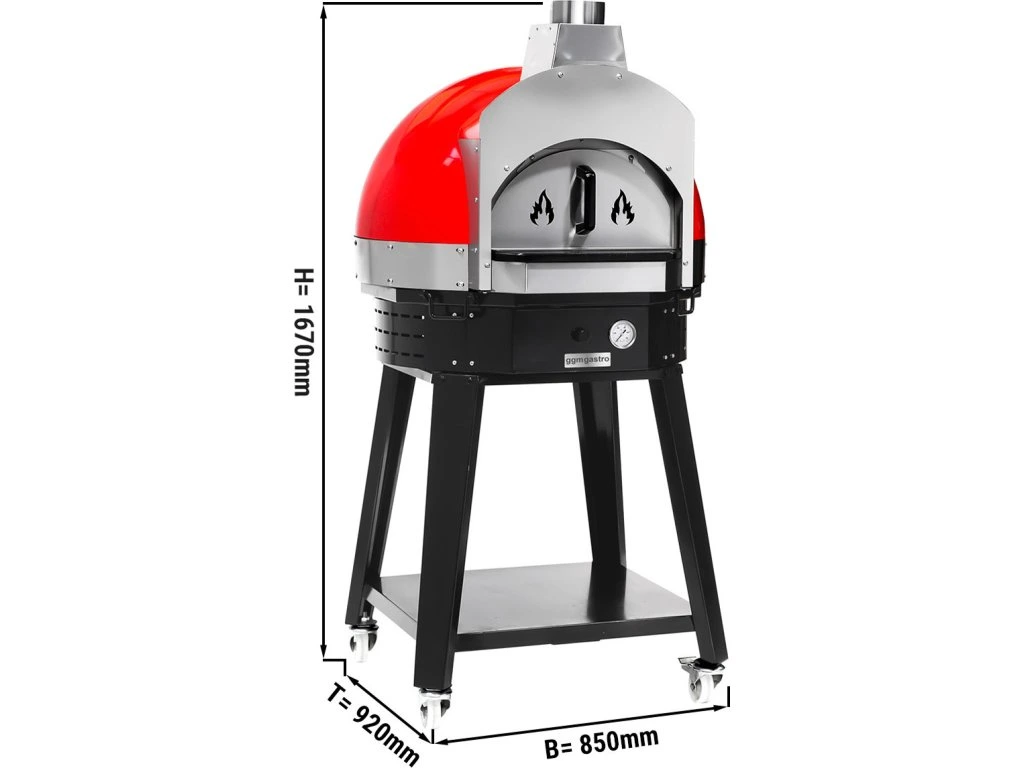 Piec do pizzy na drewno - Czerwony - Wysokość: 0,83 m - włącznie z ramą podstawy