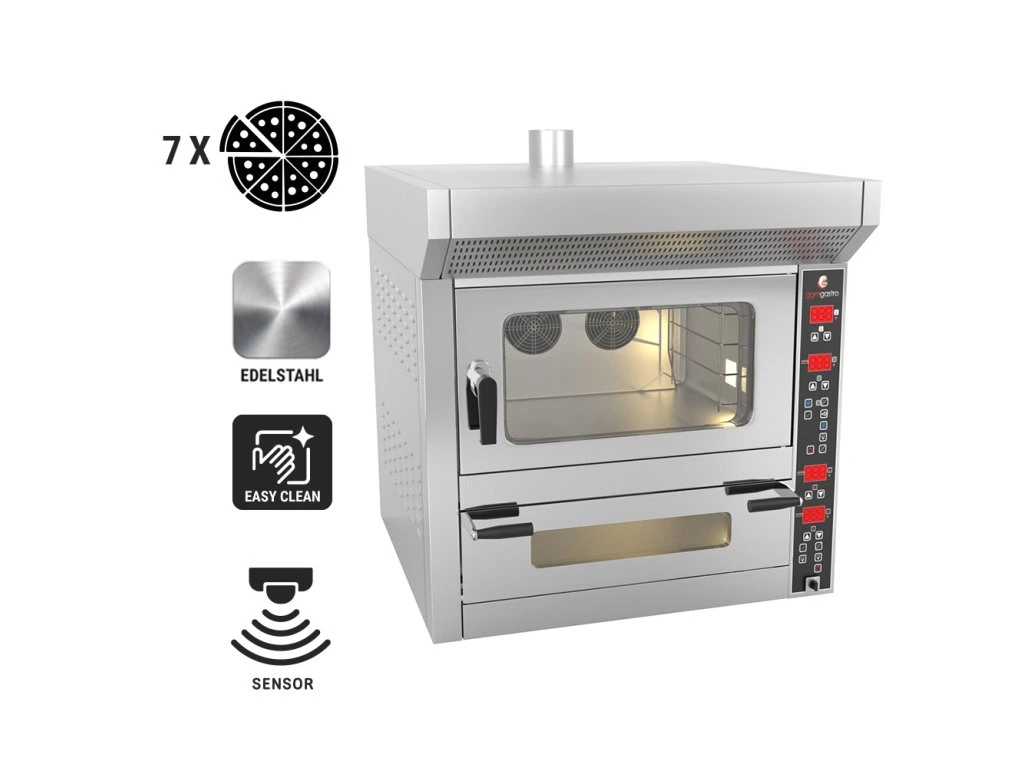 Piec konwekcyjno-parowy - Cyfrowy - Piec konwekcyjny piekarniczy - 4x EN 60x40 & Piec do pizzy - 7x Ø 25cm