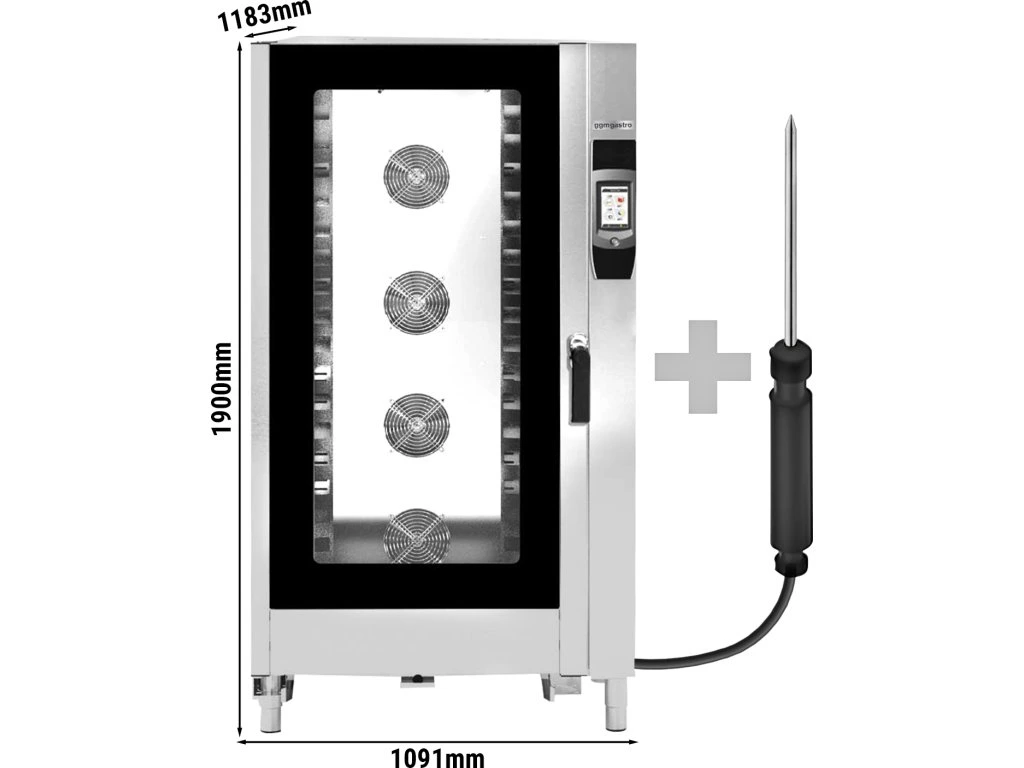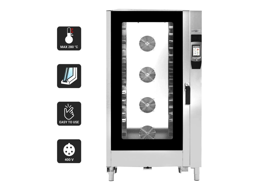 Piec konwekcyjno-parowy - Touch - 40x GN 1/1 lub 20x GN 2/1 - z systemem mycia - włącznie z wózkiem na tace