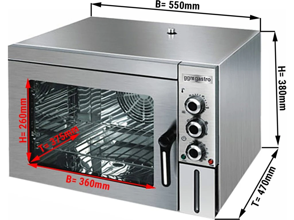 Piec konwekcyjny KOMPAKT - Funkcja parowania -30 l - stal nierdzewna - w komplecie. 1 ruszt i 1 blacha do pieczenia 353x327 mm