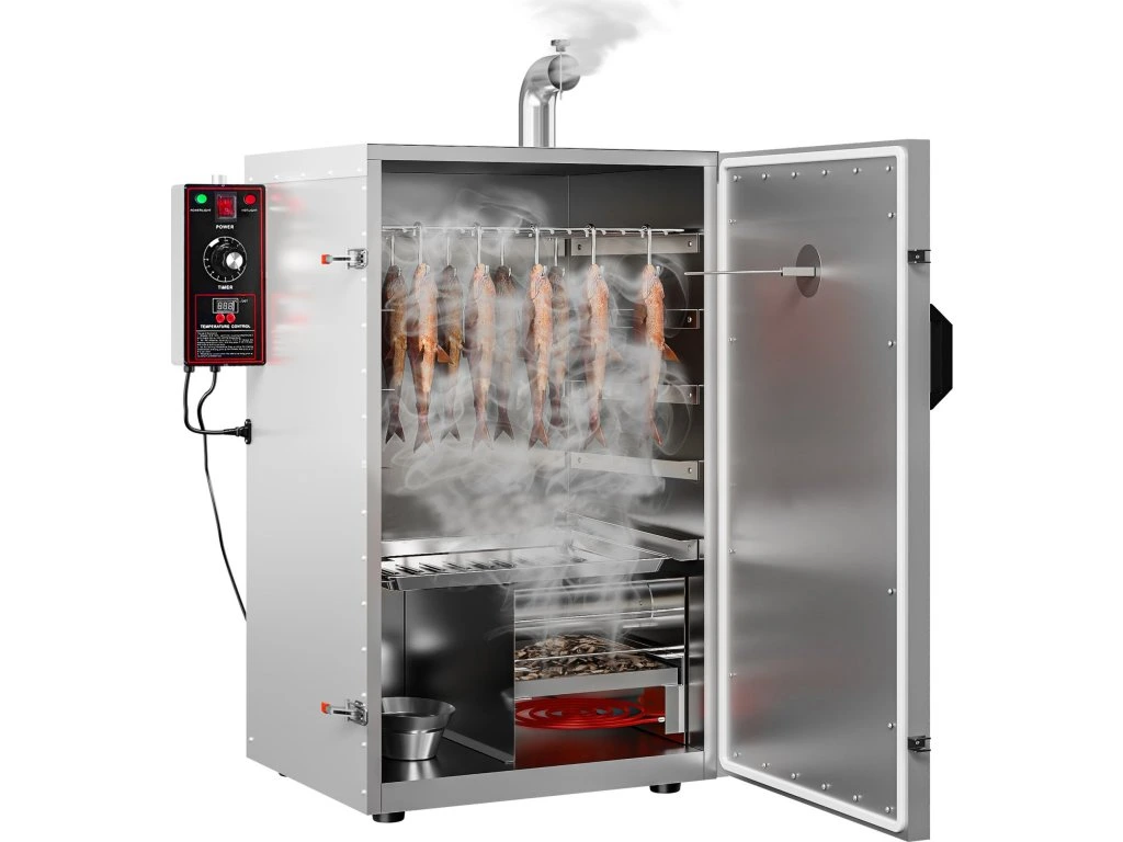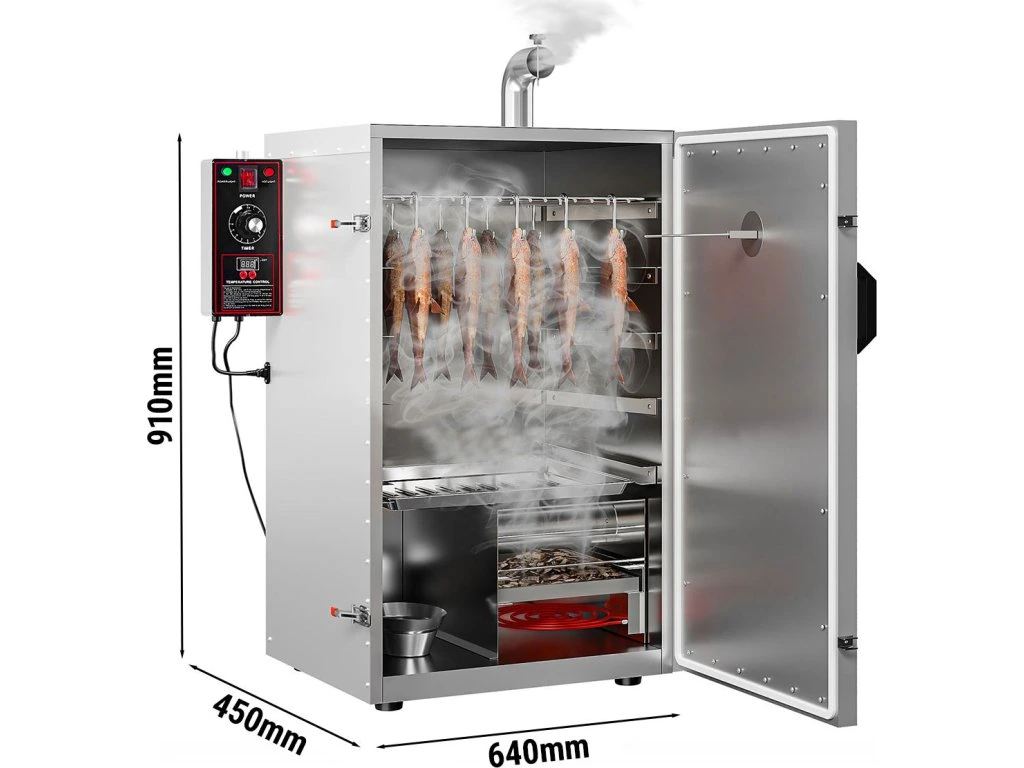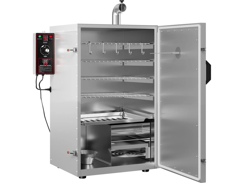 - Dzięki wielofunkcyjnym opcjom zastosowania piec wędzarniczy może spełniać różne wymagania, np. wędzenie, grillowanie, gotowanie na parze, suszenie itp.