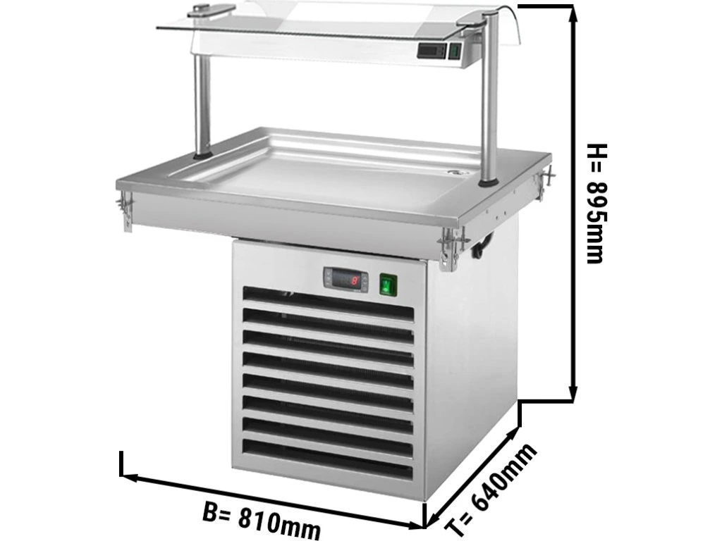 Płyta Chłodnicza wbudowana - 0,8m - +2 ~ +8 °C - 2x GN 1/1 - ze szklaną ochroną przed kaszlem
