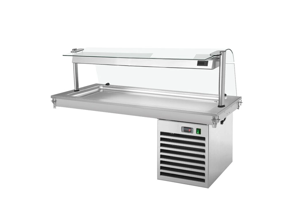 Płyta Chłodnicza wbudowana - 1,5m - +2 ~ +8 °C - 4x GN 1/1 - ze szklaną ochroną przed kaszlem