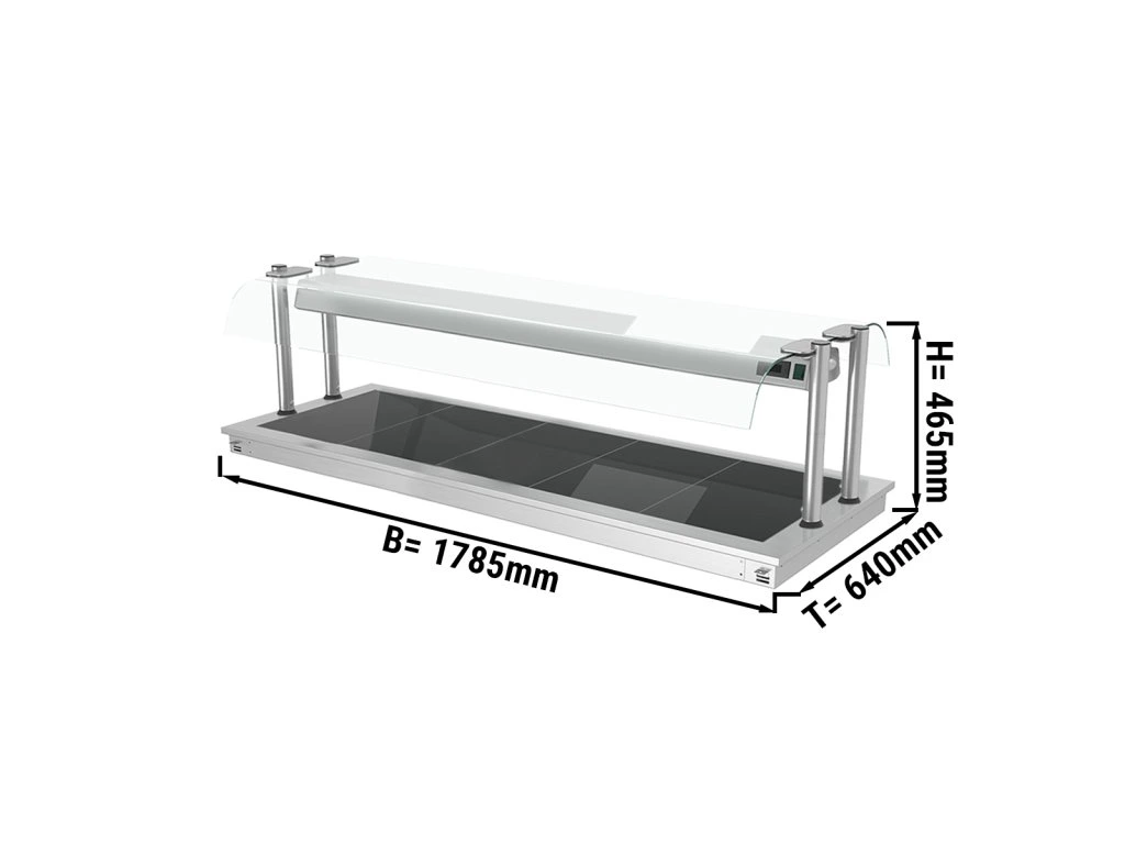Płyta grzewcza wbudowana ze szklaną - 1,8m - 5x GN 1/1 - ze szklaną ochroną przed kaszlem