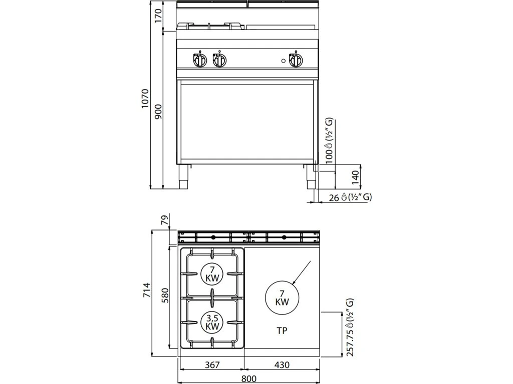 - Wymiary zewnętrzne szer. x gł. x wys: 800 mm x 714 mm x 1.070 mm
