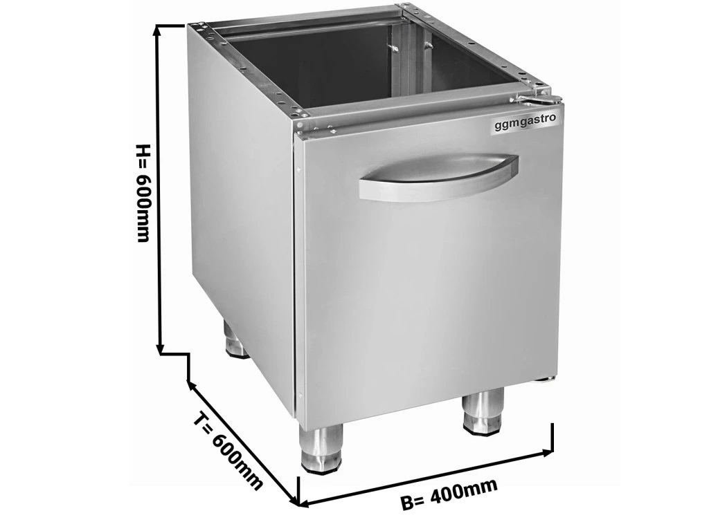Szafka dolna do kuchenki gazowej komercyjnej - stal nierdzewna - 400×600×600 mm - 1 drzwi - pasuje do GHK4632 i GHK4631 - regulowane nóżki śrubowe
