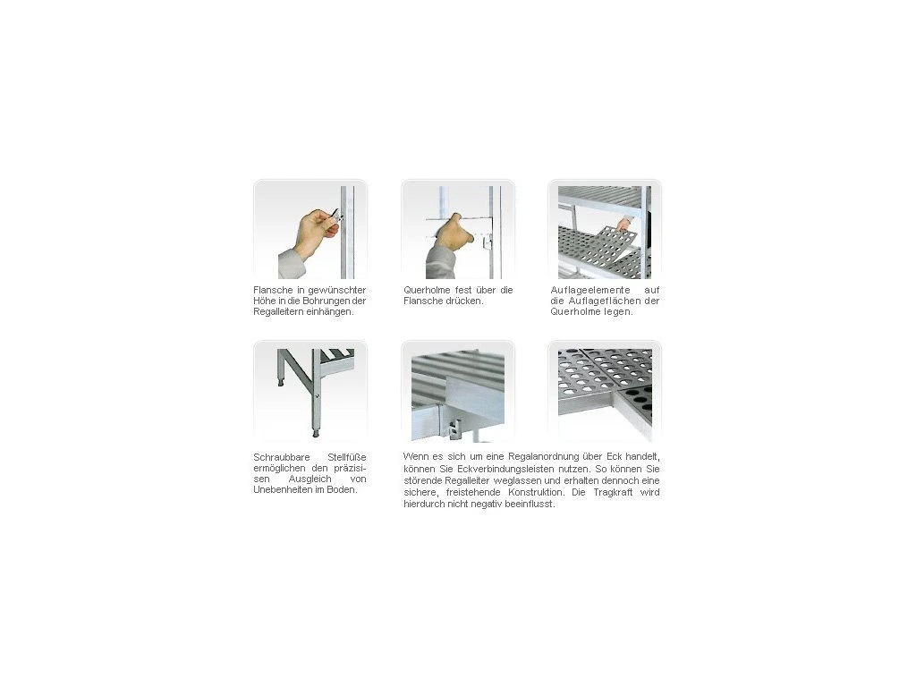 - System półek wykonany z anodyzowanego aluminium