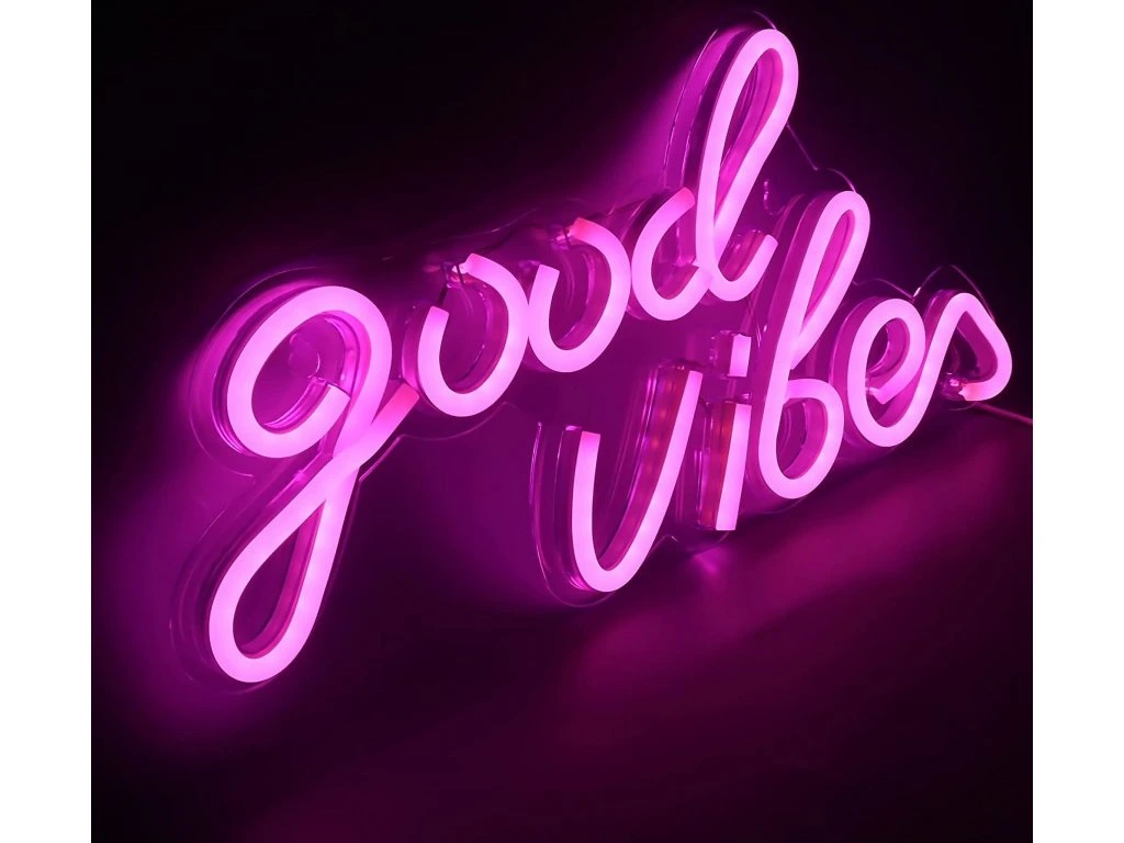 Podświetlany znak LED - Good Vibes 2 - różowy - 330x180mm