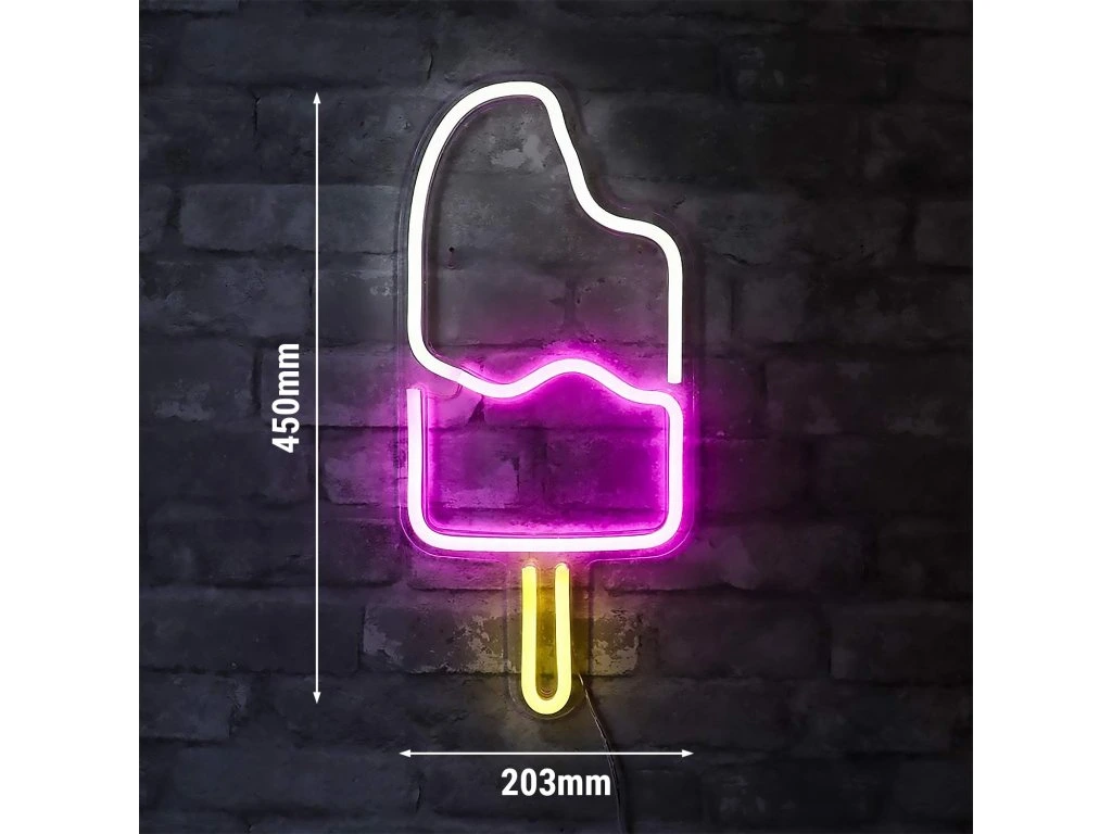 Podświetlany znak LED - Lody - biały/różowy/żółty - 450x203mm