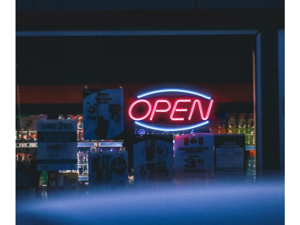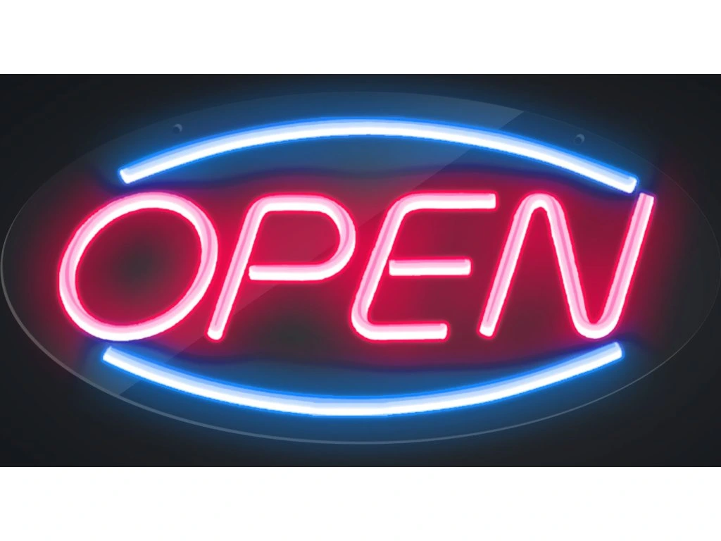 - Neon LED: "OPEN".