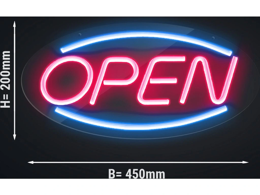 Podświetlany znak LED - OPEN - czerwony/niebieski - 450x220mm