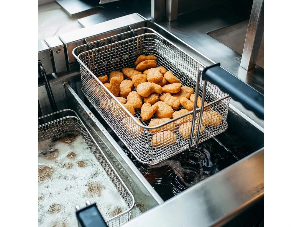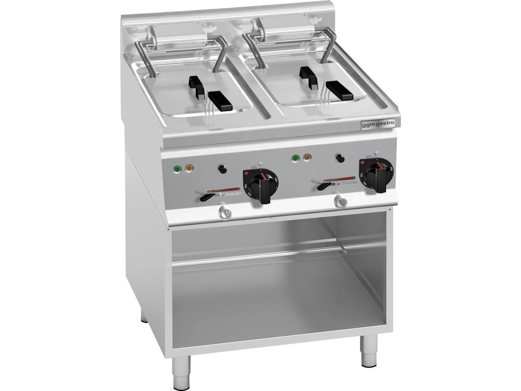 - Podwójna frytownica elektryczna i otwarta rama nośna