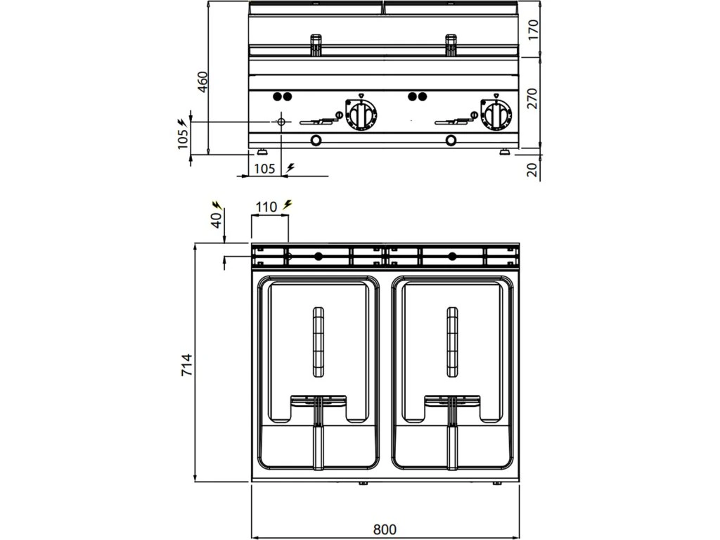 Podwójna frytownica elektryczna - 10+10 litrów - 12 kW