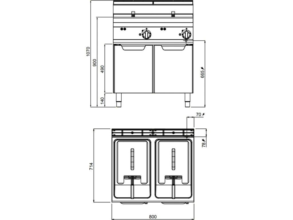 - Wymiary zewnętrzne szer. x gł. x wys: 800 mm x 714 mm x 1.070 mm
