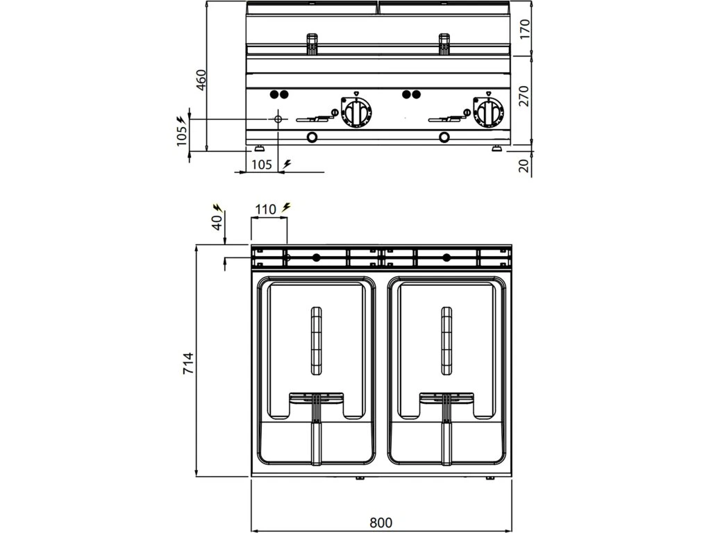 Podwójna frytownica elektryczna - 10+10 litrów - 18 kW