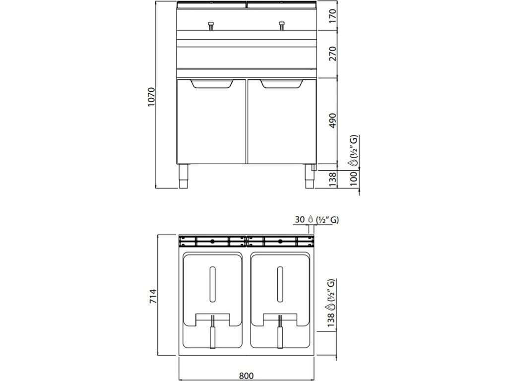 Podwójna frytownica gazowa - 20+20 litrów - 33 kW