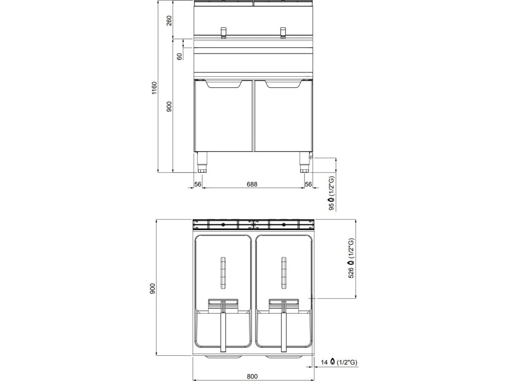 Podwójna frytownica gazowa - 20+20 litrów - 35 kW