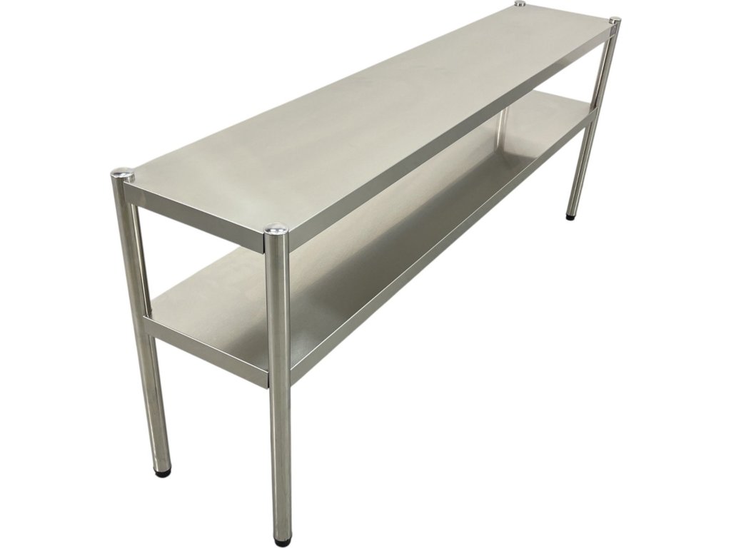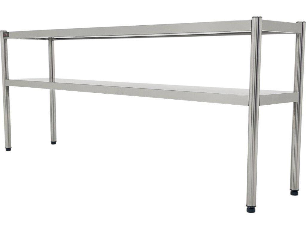 Funkcjonalna i solidna półka dodatkowa zaprojektowana z myślą o profesjonalnych kuchniach i firmach cateringowych. Idealna do montażu nad stołami roboczymi, umożliwiając przejrzyste i higieniczne przechowywanie naczyń, składników lub narzędzi. Konstrukcja z dwiema półkami zwiększa przestrzeń użytkową bez ograniczania powierzchni roboczej.