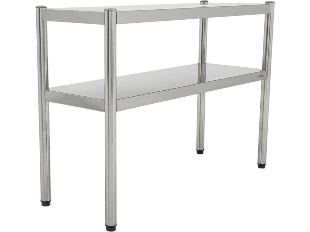 Funkcjonalna i solidna półka dodatkowa zaprojektowana z myślą o profesjonalnych kuchniach i firmach cateringowych. Idealna do montażu nad stołami roboczymi, umożliwiając przejrzyste i higieniczne przechowywanie naczyń, składników lub narzędzi. Konstrukcja z dwiema półkami zwiększa przestrzeń użytkową bez ograniczania powierzchni roboczej.