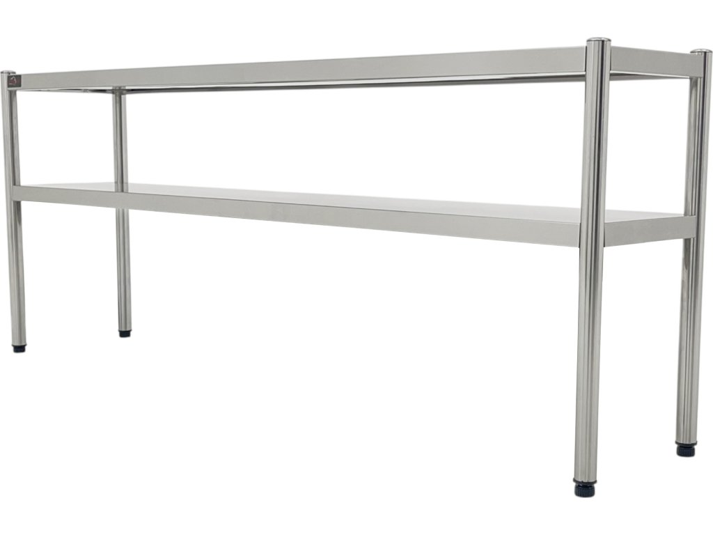 Funkcjonalna i wytrzymała półka dodatkowa przeznaczona do profesjonalnych kuchni i punktów gastronomicznych. Idealny do montażu nad stołami roboczymi, gdzie pozwala na przejrzyste i higieniczne przechowywanie naczyń, składników lub narzędzi. Konstrukcja z dwiema półkami zwiększa przestrzeń użytkową bez ograniczania powierzchni roboczej.