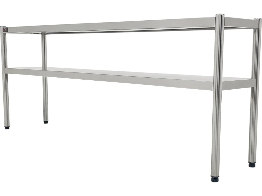 Funkcjonalna i solidna półka dodatkowa zaprojektowana z myślą o profesjonalnych kuchniach i firmach cateringowych. Idealna do montażu nad stołami roboczymi, umożliwiając przejrzyste i higieniczne przechowywanie naczyń, składników lub narzędzi. Konstrukcja z dwiema półkami zwiększa przestrzeń użytkową bez ograniczania powierzchni roboczej.