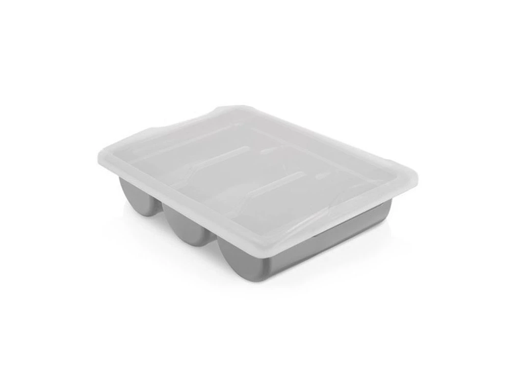 Pojemnik na sztućce z 3 przegrodami z pokrywą – szary